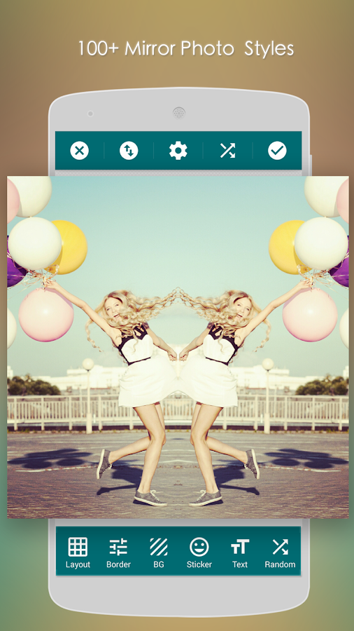 Mirror Photo is the best app for you to create Mirror Photo and Collage Photo. It has more than 50 different mirror effect to create Mirror Photo and has more than 200+ different layouts to createCollage Photo.